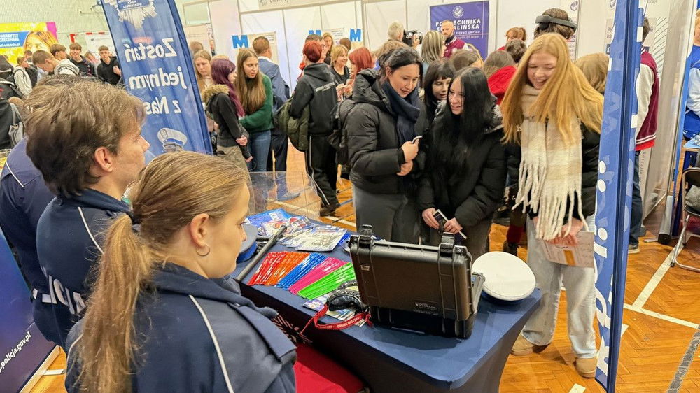 Podczas Targów Edukacyjnych w Zespole Szkół nr 1 im. Henryka Sienkiewicza w Kołobrzegu przedstawiciele Komendy Powiatowej Policji zaprezentowali uczniom ofertę służby, wyjaśnili zasady rekrutacji i pokazali wyposażenie wykorzystywane w codziennej pracy funkcjonariuszy.
