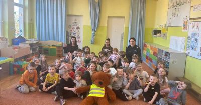 • Policjantka z Misiem Kolaskiem uczyła przedszkolaki w Ustroniu Morskim
