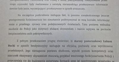 Oficjalne podziękowania trafiły do starszego posterunkowego Łukasza Buckiego z KPP Kołobrzeg za profesjonalne i rzetelne prowadzenie sprawy...